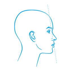 - The chin aligns with the nose